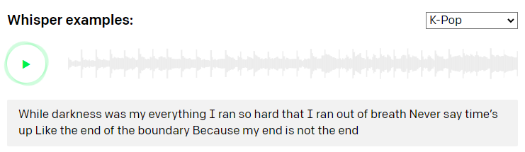 영어는 base, small로도 어느 정도 인식이 되지만 한국어는 small까지에서 품질이 나빠 medium은 되어야 괜찮은 품질이 나옵니다.